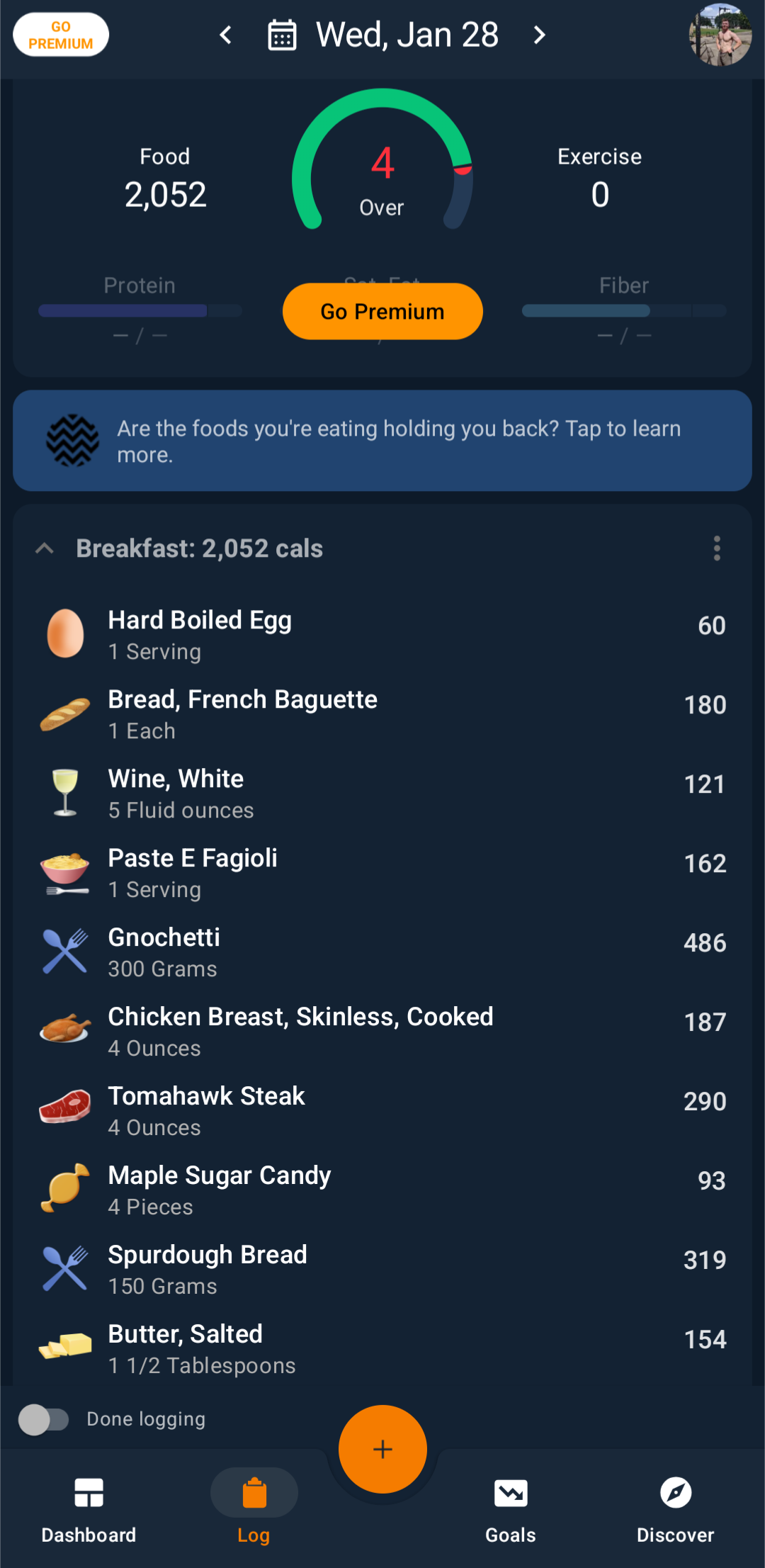 huh, i've been surprisingly satiated at a deficit with a similar diet less the wine and with fewer carbs