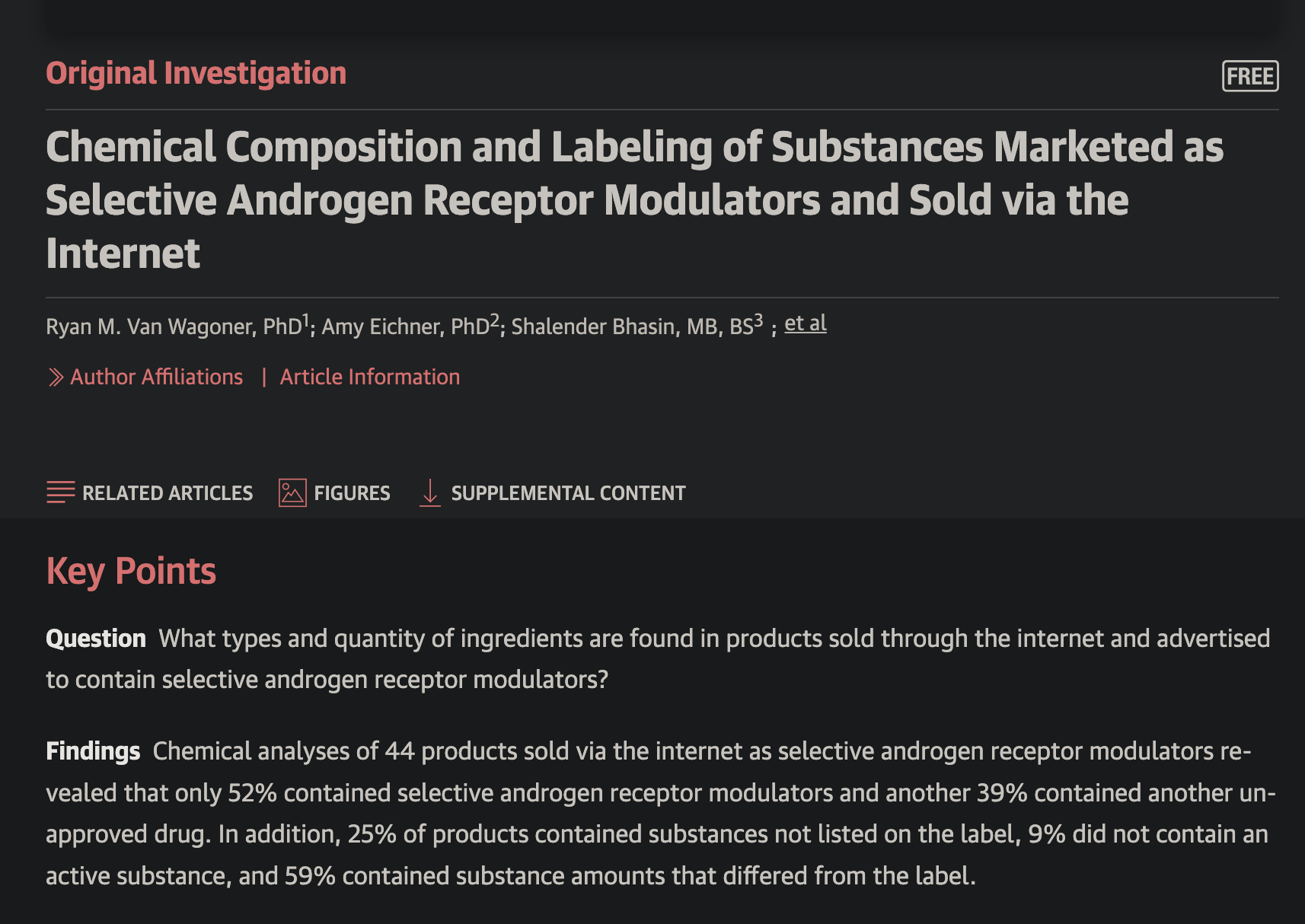 >>77045245>Chemical analyses of 44 products sold via the internet as selective androgen receptor modulators revealed that only 52% contained selective androgen receptor modulators and another 39% contained another unapproved drug. In addition, 25% of products contained substances not listed on the label, 9% did not contain an active substance, and 59% contained substance amounts that differed from the label.https://jamanetwork.com/journals/jama/fullarticle/2664459