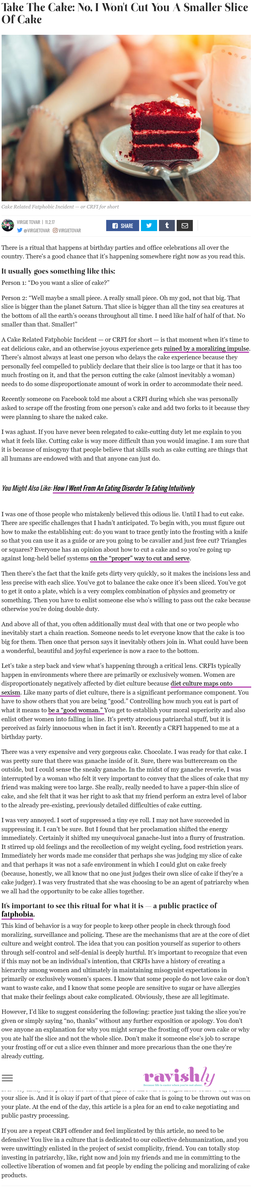 >>77051194I thought that was satire. There's no way anyone could think that asking to have your slice of cake cut smaller is a disproportionate amount of work.But after looking up the author I think she really means it. I hate her.