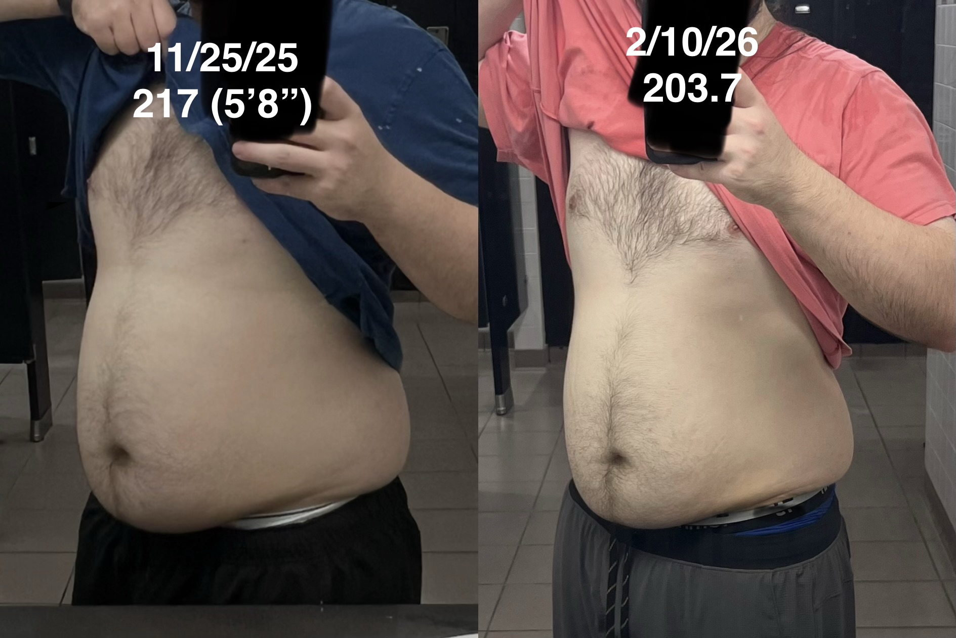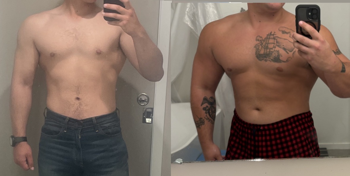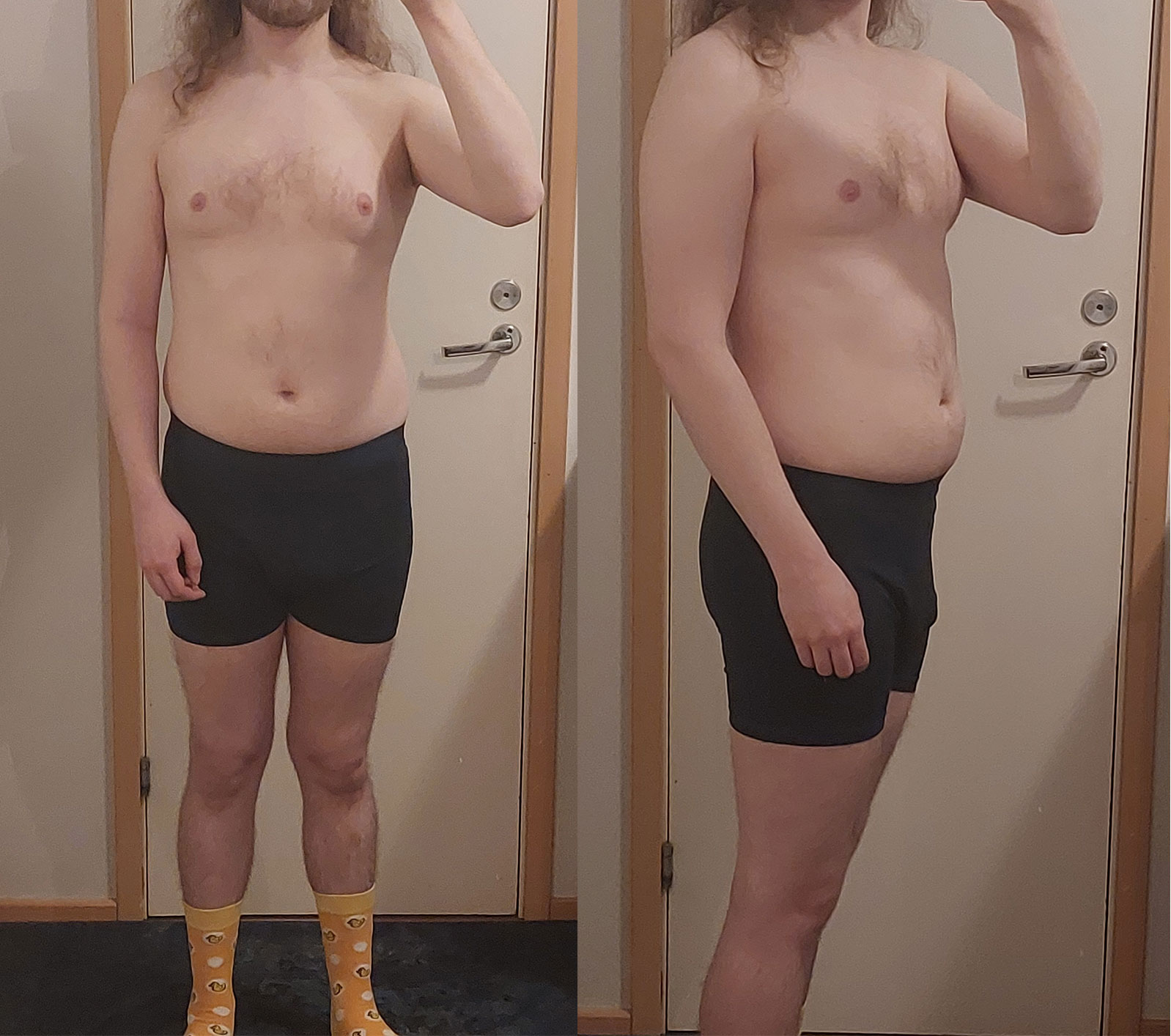>left april 2025, 5'10 135lbs>right feb 2026, 5'10 149lbsi just got vaguely hairier :(