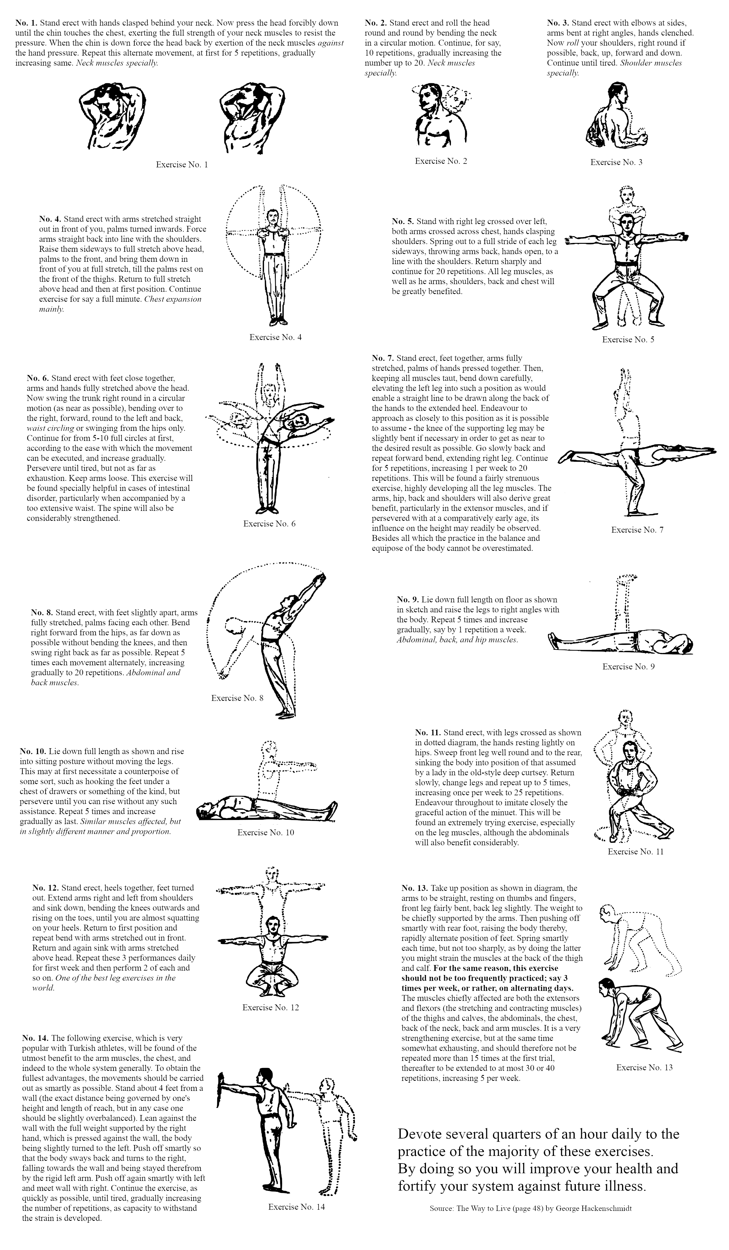 I made this from George Hackenschmidts Way to Live no equipment exercises for invalids and leisured persons.I just found using the .pdf so damn annoying.