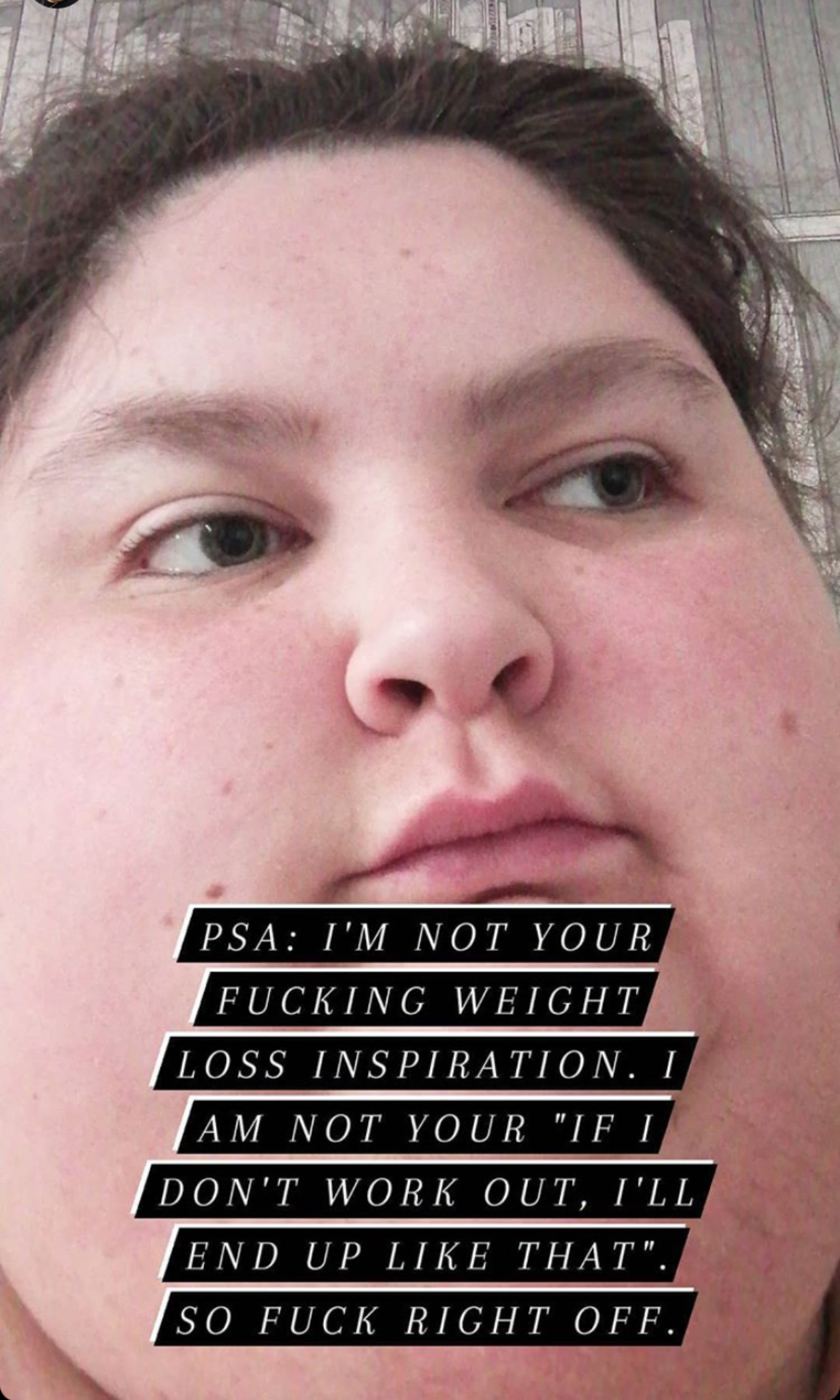 >>77125312That's how they show that they're "healthy" even though they're fat. It's the same reason they often make sure to include that they ate a salad or a piece of fruit or went for a slow, five-minute walk.>see i drink lots of water and eat nutritional foods and exercise! Obesity is a gene! HAES!