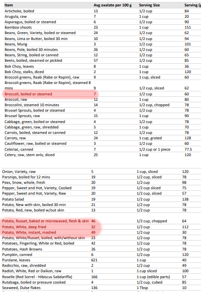 Broccoli has lower oxalates than potatoes and it doesn't matter because they are a meme.