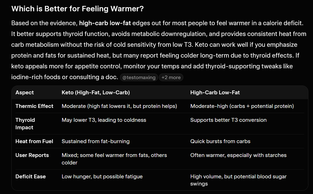 >getting off of keto after reaching my goal weight and stalling at the gym>94kg, 193cm>around 17% bf according to navy method>want to get leaner, less bf, while getting more muscle>was doing 2100kcal, upped to 2750kcal for energy and hormone gains (2100kcal crashed my hormones)>240g carbs, 240g protein, ~90g fatdoes this sound right? chatgpt seems to think if i follow this i'll lose more bf and recomp