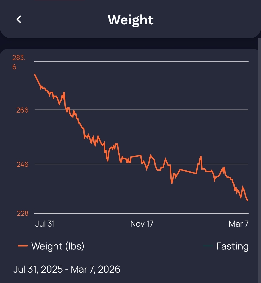Sup fat asses. Finally broke 170. Down to 169.7 as of this morning. Went from 255 to 190 in 7 months from May to Nov. Only Down 20 pounds on the last 4 months. Its a fucking grind, bros. Im surprised i survived the holidays at all, thats always been my studder step where I quit. 20 lbs to go, hopefully I can lock in and make it by June. Thankfully my dating life has been significantly better since dropping below 200. WAGMI./blog