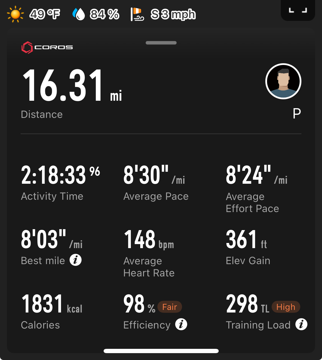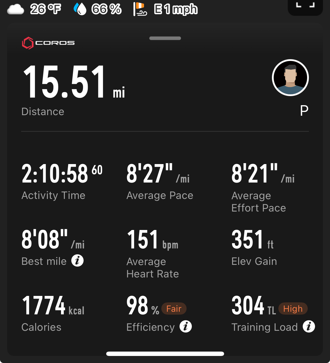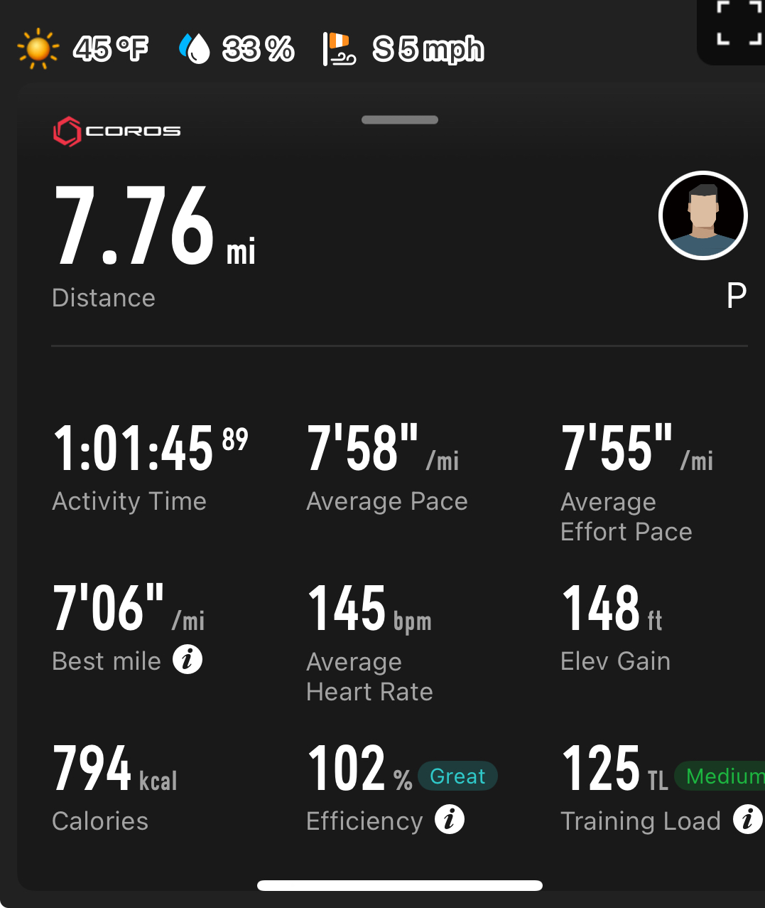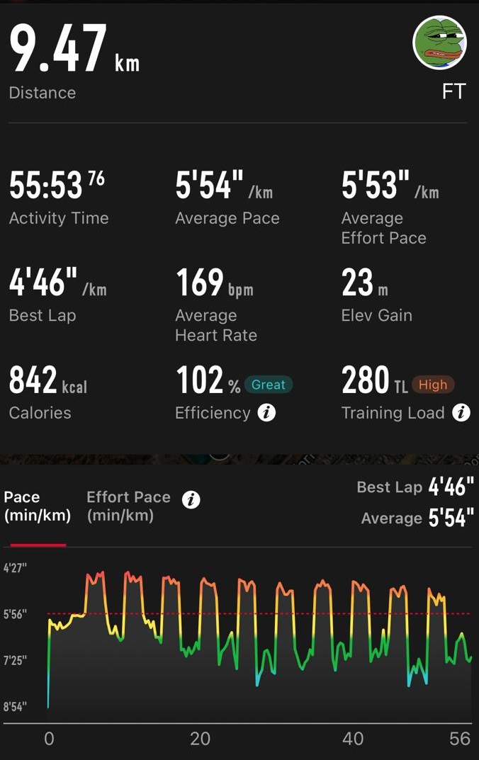 >>77158365Had another one like that today.I looked at what I did around october, same pace, same distance, but heart rate 20 bpm higher. Nice.