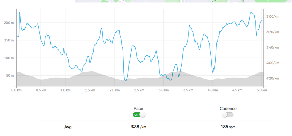 >>77134819the scale is retarded. from 0 to 20 minutes per km ffs. then you can't see any change in pace. useless and such an easy thing to fix that's why it annoys me so muchthis is what it looks like on the phone where you can see the change of pace
