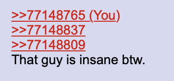 >>77148765>>77148837>>77148809That guy is insane btw.