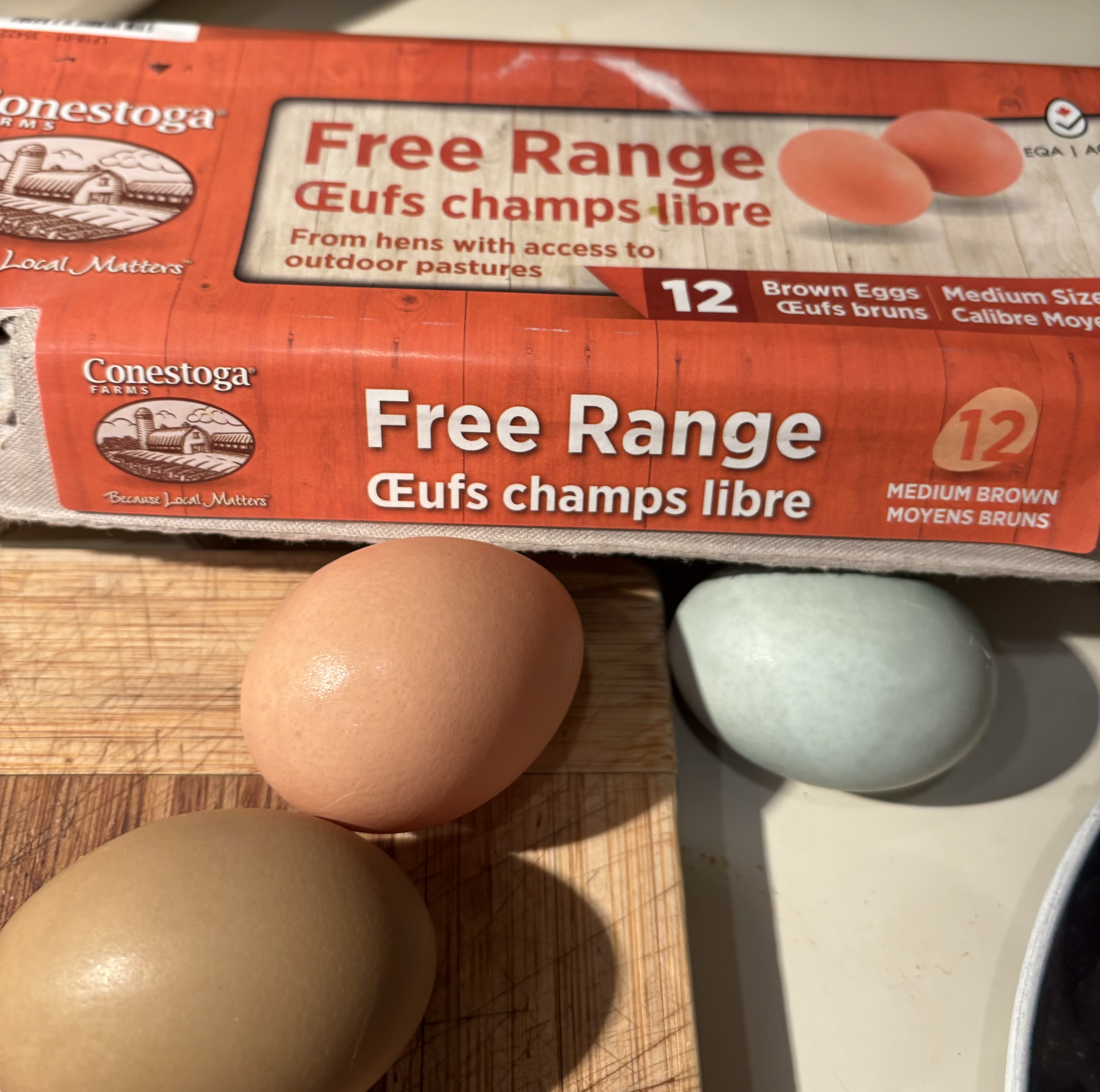 My eggs come from my chickens. They’re champions in my eyes.