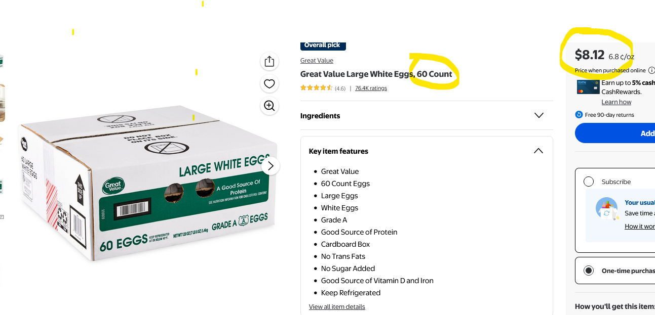 >>77162375>scared of walmart eggs, so he buys the exact same eggs elsewhere but in a different box for 3x the pricelol