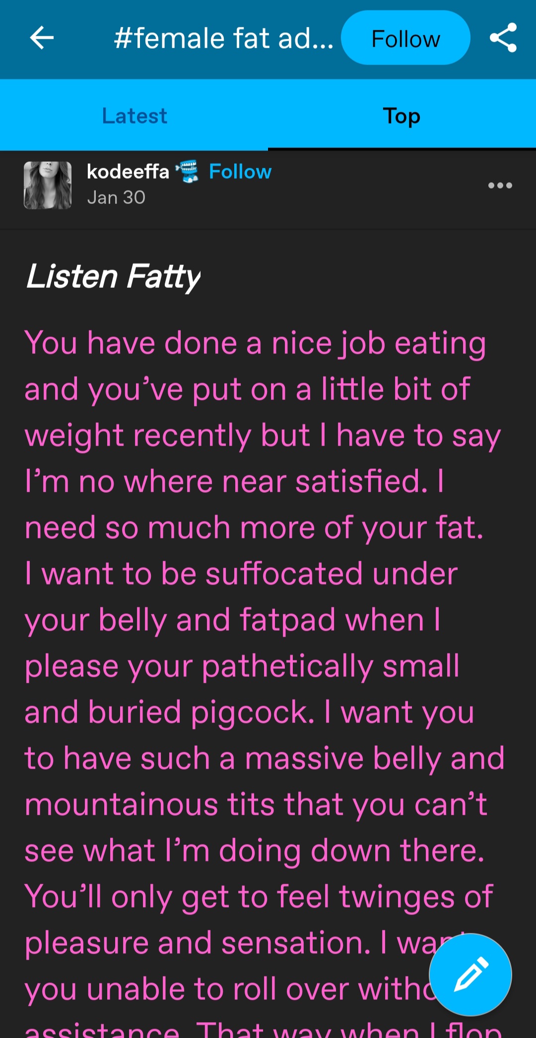 fat people going online and trying to convince people being fat is healthy, normal or desirable pretty much sums up whats wrong with fats