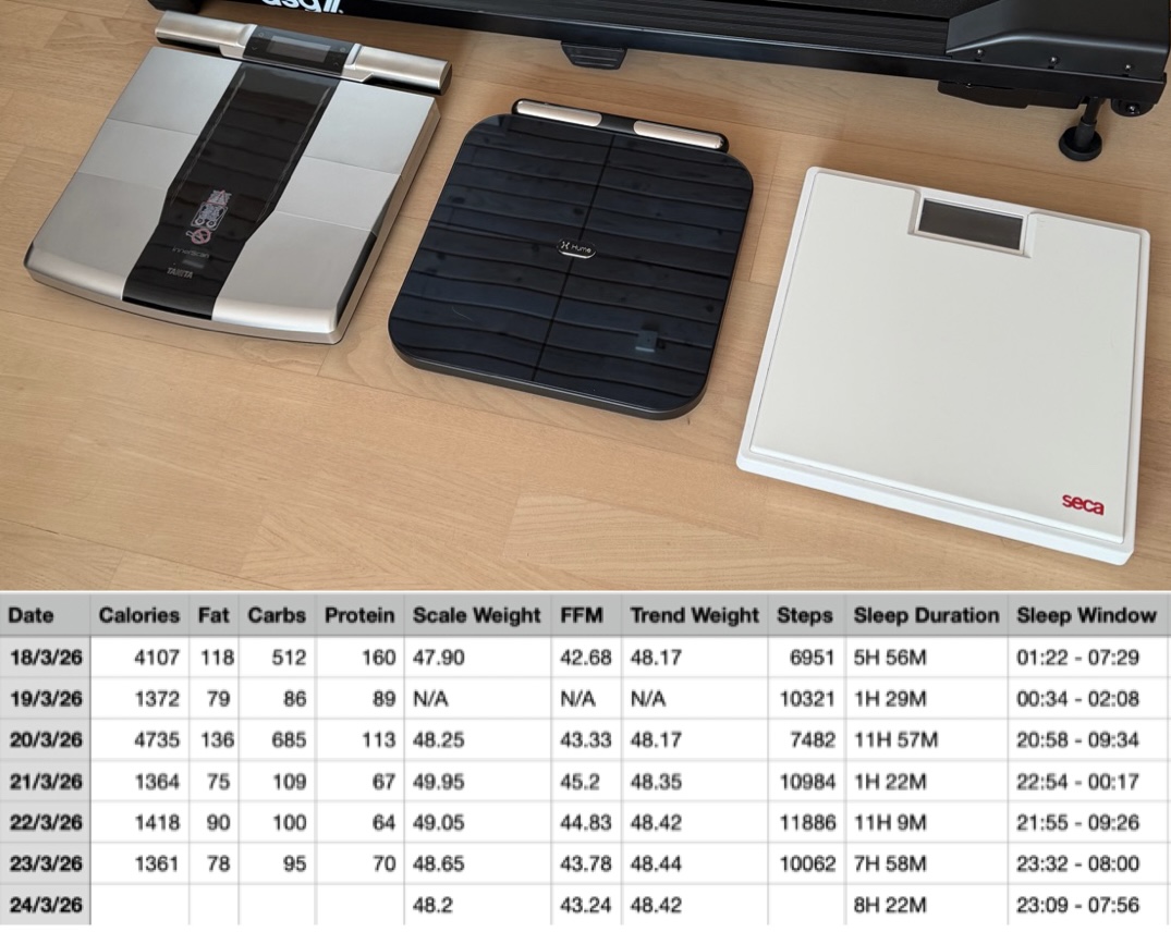 Turns out, it doesn't even measure my weight right (Tanita matches the Seca dumb scale), and no amount of edema leaves a dent in Hume's ICW/ECW.