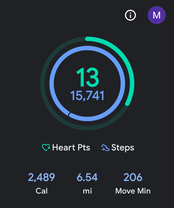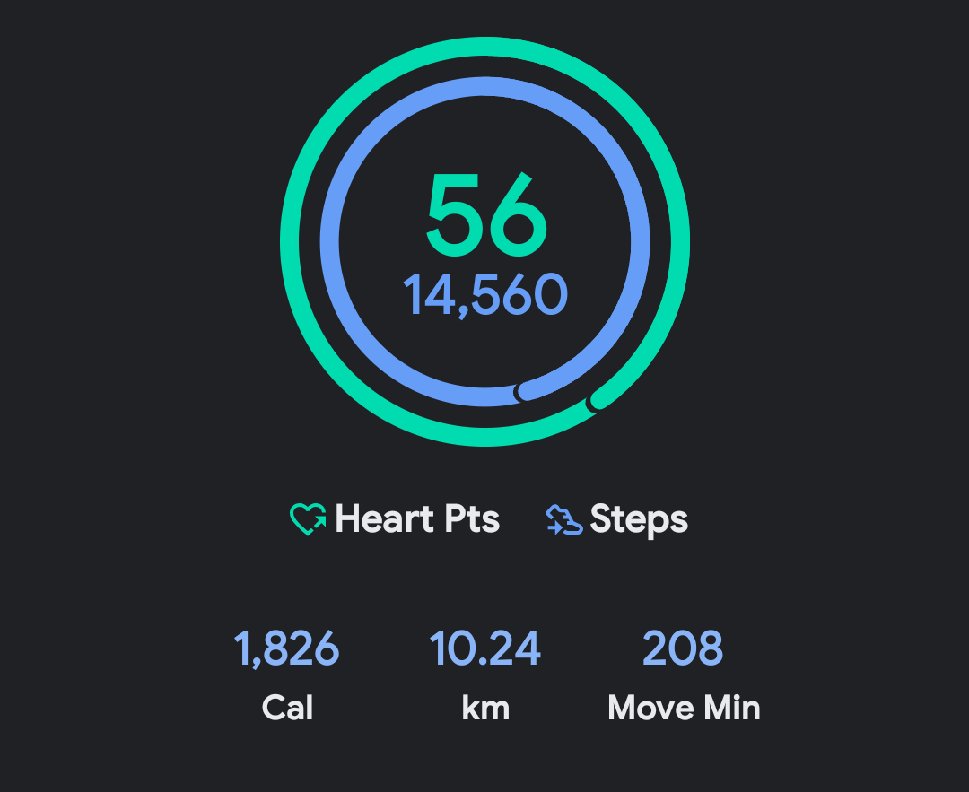 ive walked about 10k steps today; almost 8km and my watch says that's just under 500kcal burned.