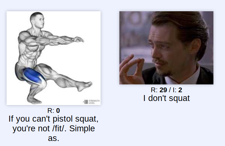 If you can't pistol squat, you're not /fit/. Simple as.