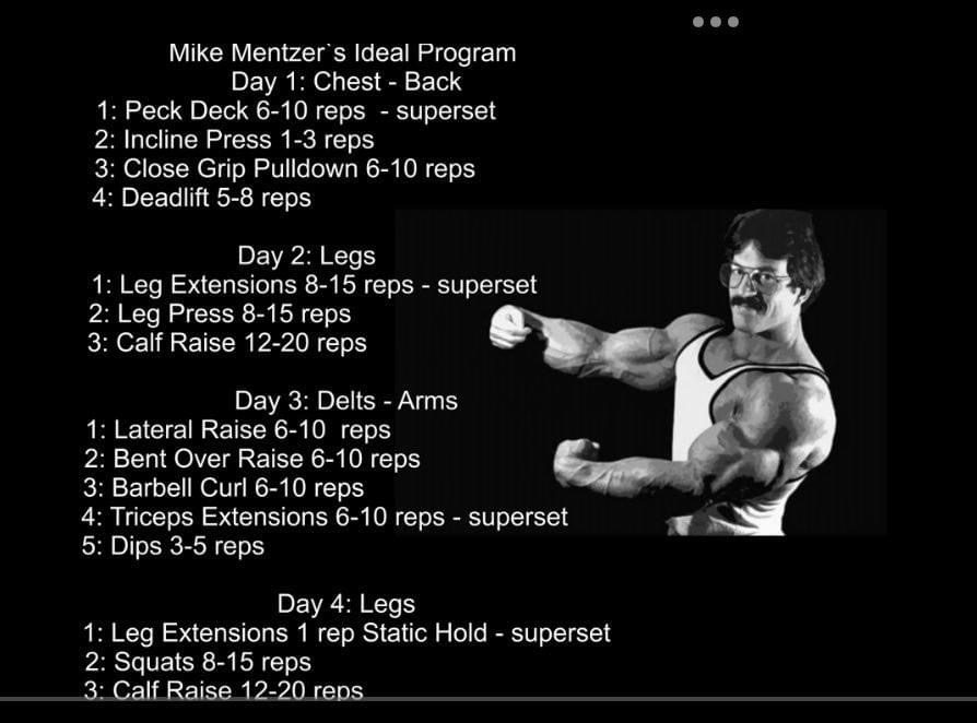 People should understand that the value of HIT and especially Mentzer is not purely in doing things 1:1 to what he said.I would go as far as to say that most people without enhancement and not using meth as a PWO like Mike should not pursue training purely like he advised.Mike's direction was right, but for him the distance he could go there was much further than most people can reliably do.Doing just one (after proper warmup) really, really, really hard set per exercise to absolute failure just isn't what average people will be able to keep doing week to week. So doing two sets or, god forbid, THREE sets, doesn't inherently go against HIT.The main point I think is simply this:Put in as much effort and exertion in to the reps and sets you do as you can, within reason so you don't visit snap city, and don't obsess over the NUMBERS (volume, weight) in the middle of the process.Retards like M. Israeli and Nippleff obsess about the metrics and numbers and all kinds of peripheral bullshit when the main focus should be in TRAINING WITH SOME FUCKING EFFORT, while also not being a retard about recovery and obsessing over number checklists of volume per week.