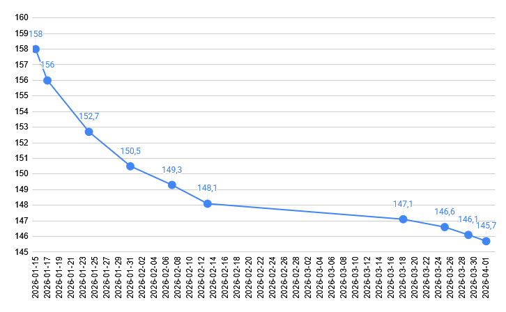 After I got sick for like 3 weeks I've been kinda slacking but line still goes down. I did want to get to 145kg on Good Friday but that's probably not happening.