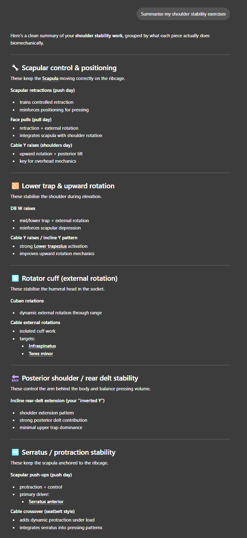 If you've got an actual injury, don't train through it and go see a physio.If you want to generally improve your shoulders, ask chatgpt