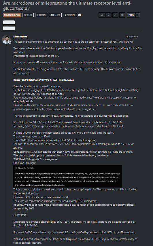 >>77185657>MuRF-1 (Trim63) and atrogin-1 (MAFbx/Fbxo32) inhibitors/downregulatorsMifepristone exerts great effect on both of these. Do you think this guy might be correct? https://bioenergetic.forum/topic/9257/are-microdoses-of-mifeprestone-the-ultimate-receptor-level-anti-glucorticoid