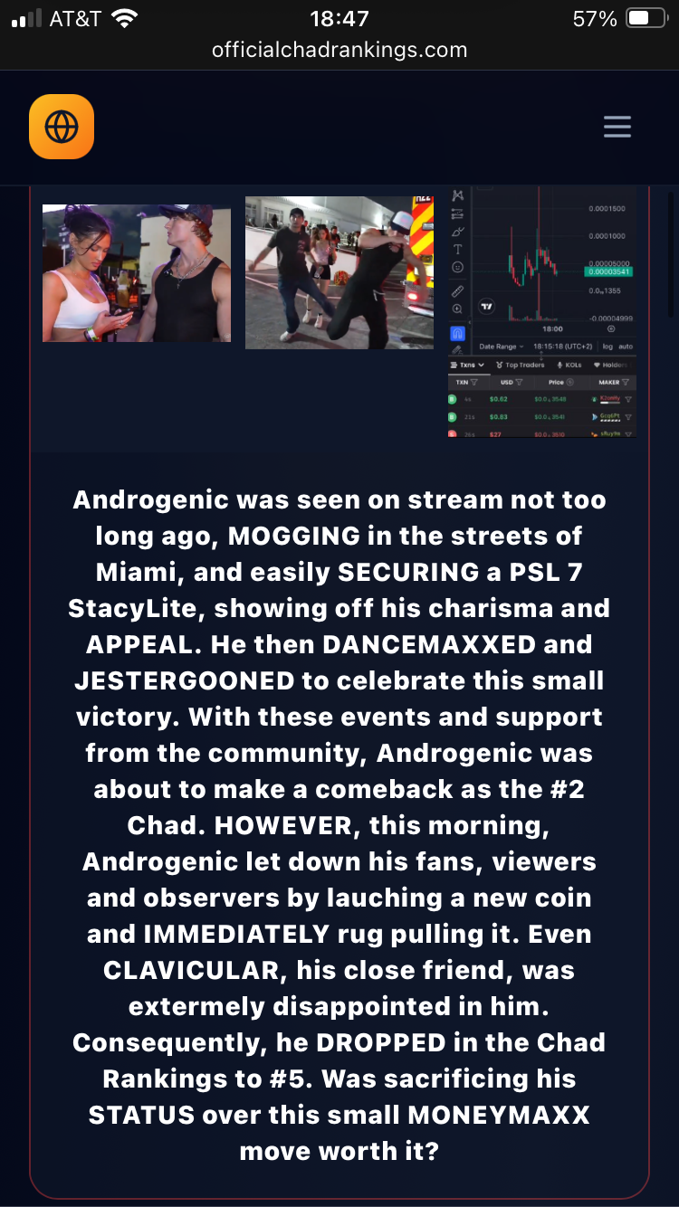 >>77186795based andro makes everyone seetheyeah thats his wigyears he uses roidsyeah he's 6'5 wearing lifts to appear 6'8yeah he gets the babesand yeah you're mad and coping unc