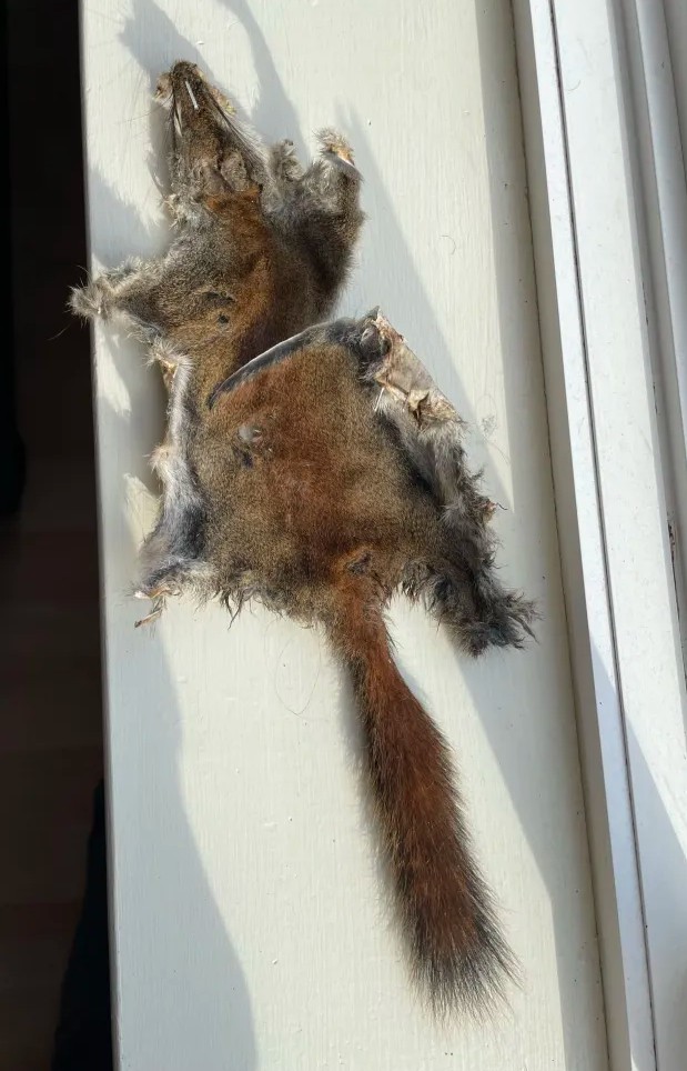 >>77195349No I trap them and made a little squirrel guillotineThis one got him in the back you can see the cut on the fur but the meats still good