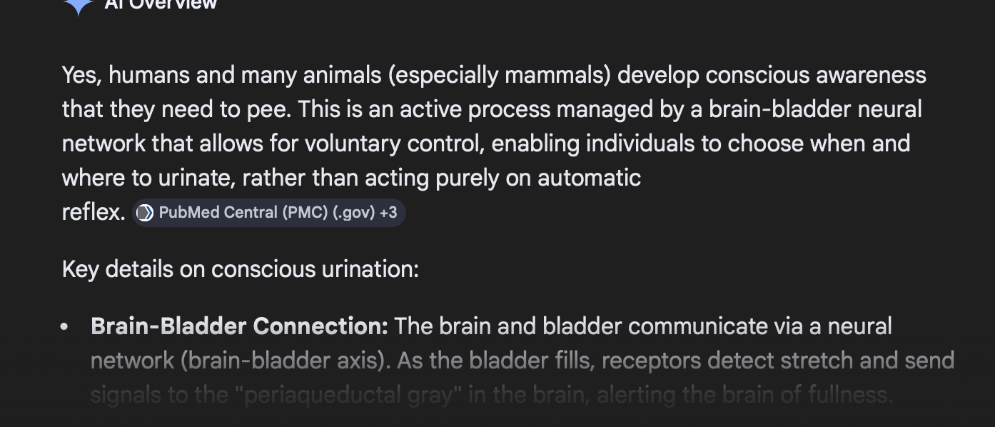 >>77197164>anon literally pretending he has never spaced outironic shitposting is a banning offense guy.if you spaced out, you physically could not know that you had bodily functions.As that is the entire state of spacing out.So you're telling me for decades now, you have never entered a state where your brain just relaxes and you have multiple hours, an hour, thirty minutes, even ten minutes where your brain goes on autopilot and you're not thinking about a single thing and during that time you just happened to i don't know "need to pee" and you didn't consciously process it.Because i'm calling you out on your bullshit.The body holds piss almost completely autonomously, that's how we don't piss ourselves when we are asleep.The amount of times that>i was working out>playing guitar>running>swimming>playing video games>watching a movie>spacing out>cooking food>talking to a girl>playing pool>driving>working>(list continues)and I all at once minutes or even hours later I consciously become aware that I need to piss is often and regular.The only explanation is that you do absolutely nothing noteworthy in your life and the moment you need to pee you look a good NPC immediately rush to the bathroom. forsaking every single thing ever possible in the world to ensure you pee because your body told you, that you need to pee.You're full a shit, you're a liar.This is literally why birds and lizard despite being trained in all sorts of complex task, often fail at the ability to be potty trained. Because they lack the ability to become consciously aware that they need to use the bathroom and instead result on pure instinct alone.Most Mammals the body automatically stops pissing and you have to be aware you need to piss in order to piss. If your brain is distracted you do not need to pee until it hurts so bad it forces the brain to become conscious of the problem.i swear the literal fucking subhuman robot scum posting now days.