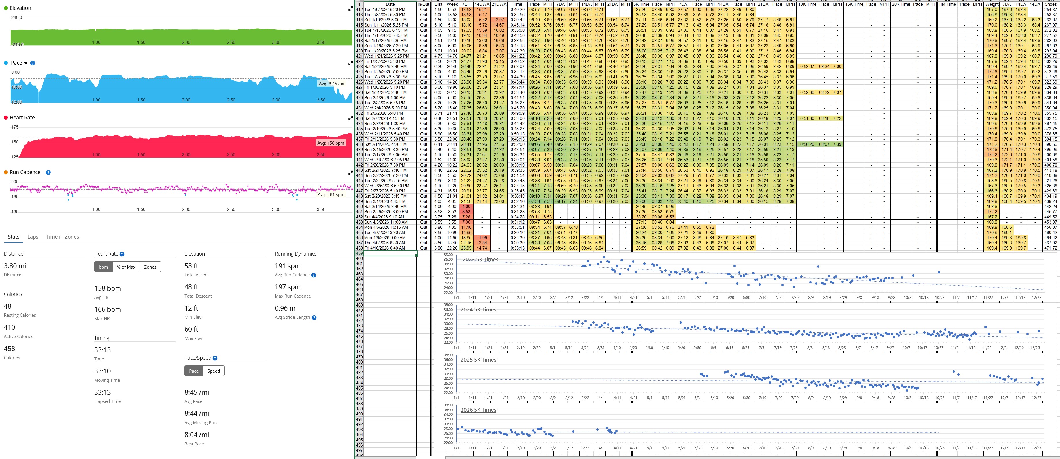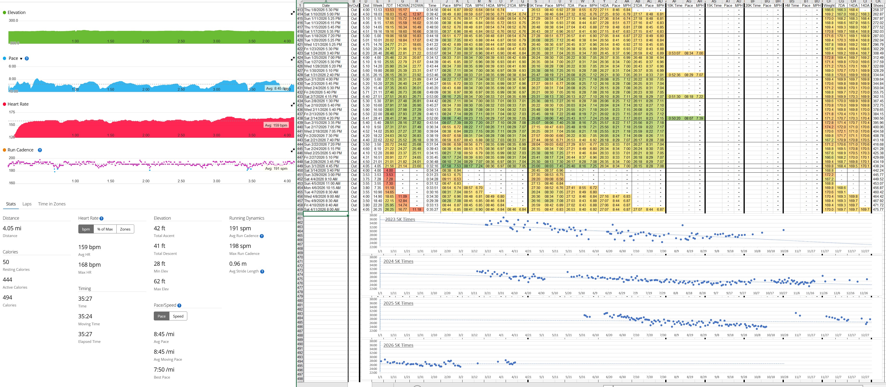 >>77198719God bless your tracking autism, but to what end is all this data keeping when it has taken four years to get a sub 30 5k. You need to put some tempo runs or hill runs or SOMETHING in rather than plinking along at a 9:00 pace for days