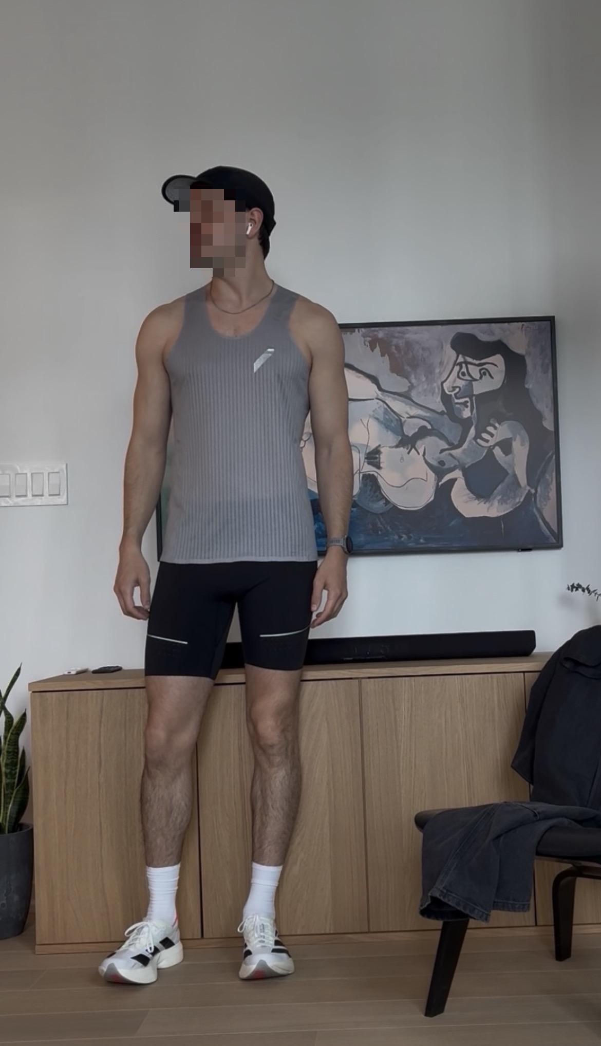 avoid tights, your quads aren't juicy enoughstick to 4 or 5" shorts and go topless