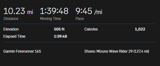 >go out for run>I think I'll just do my normal 4 miles>actually I want to do a 10k>....>hm....8 seems like a good number>plan to turn around at 4 miles>ACTUALLY>If I just run one more mile that's a 5 miles turn around which means a 10 miles run>fuck it lets do it>mile 8 hits>oh god fuck why did I do this I wish I was at home>actually if I had just gotten home I would be thinking "what, you couldn't do 2 more miles?">PRd 15k and 10 mile runI think my progress is good since I only started running in November and I'm confident I could probably do a half-marathon since there will be water and snacks. I may start carrying gels with me because I was fucking gassed at like mile 7 and I don't ever plan to do longer stuff, both with cycling and running I go out, feel good and once I get a number ion my head I do it. I also should probably start tracking my calories again because I hate eating and everything involved in the process so I know I'm never getting enough but that's a future me problem.