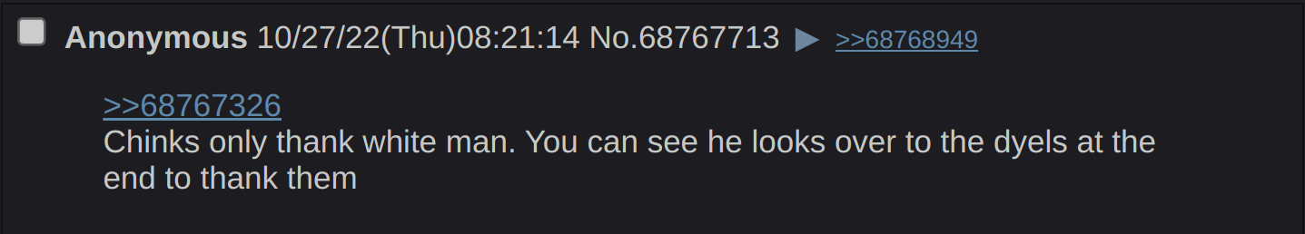 Asians are doormats unless there's a white person nearby they can farm white people points from, drone people only act on validation from others I need a 360° of that