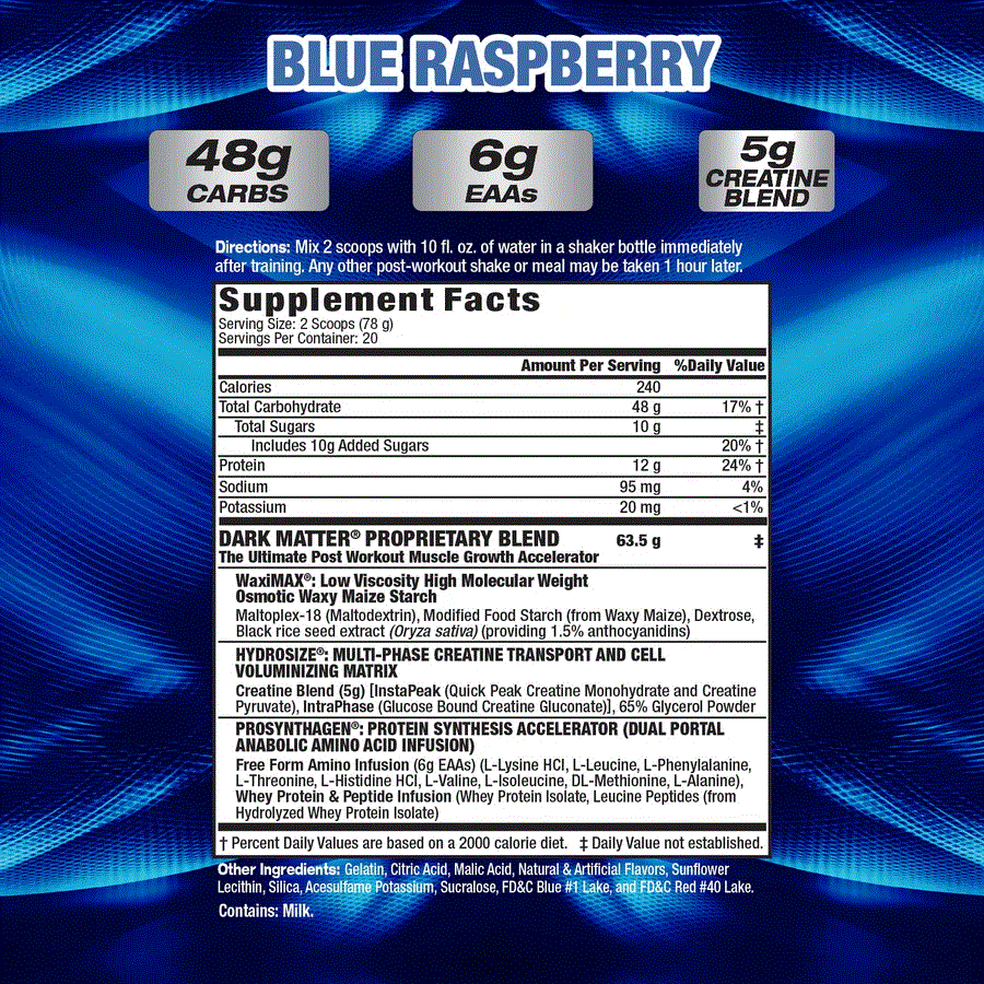 Shake with 15g carb blend, 15g protein 5g creatine. 150 cals.