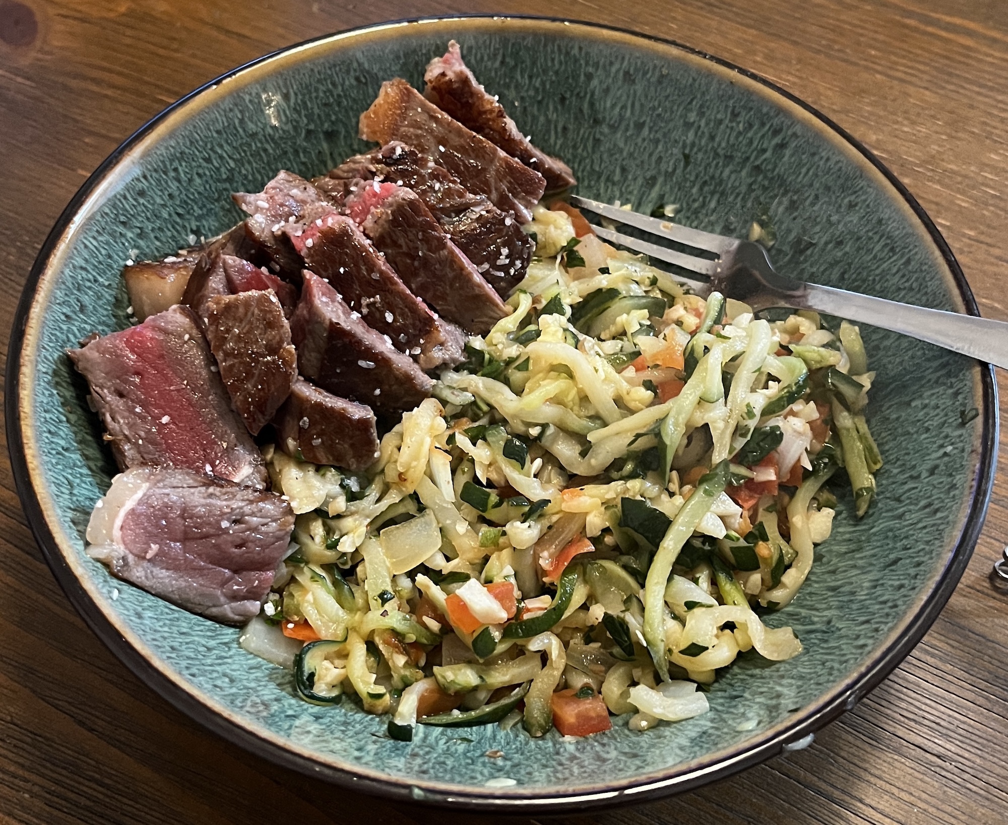 when i do eat fatty meats i make the sides all veggies. zucchini "noodles" are great... tomato, garlic, basil, lime juice, half tsp olive oil to cook.