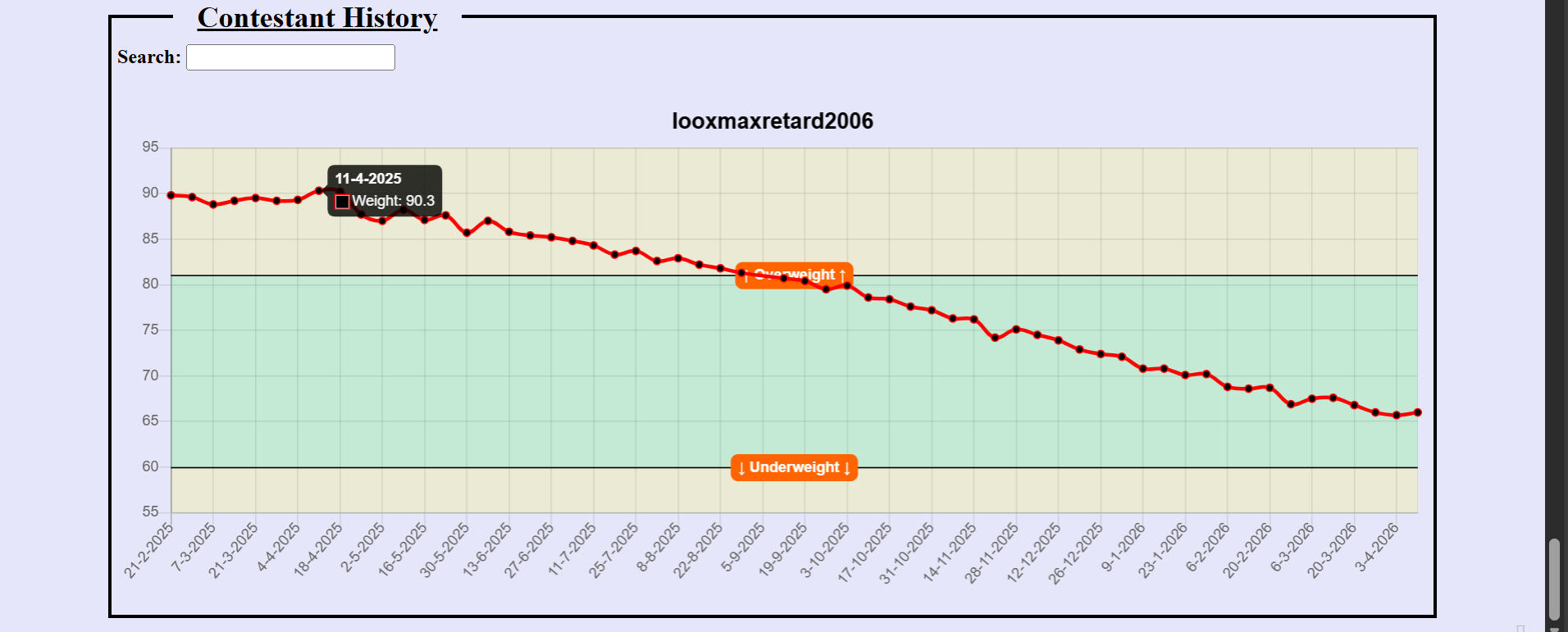 Fatty Contestlooxmaxretard200664.2kgI've basically lost like 26 kg in the past year
