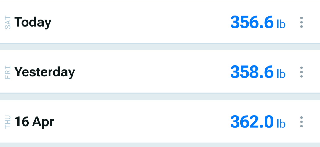 Fatty ContestHerniatedLife447lbsFinally some success, I somehow managed to go a full week without cheating. Fasted one day but couldn't find the willpower to fast more. Sad that I'm retreading ground for the umpteenth time but progress is progress and I already feel a little less pain in the knees.