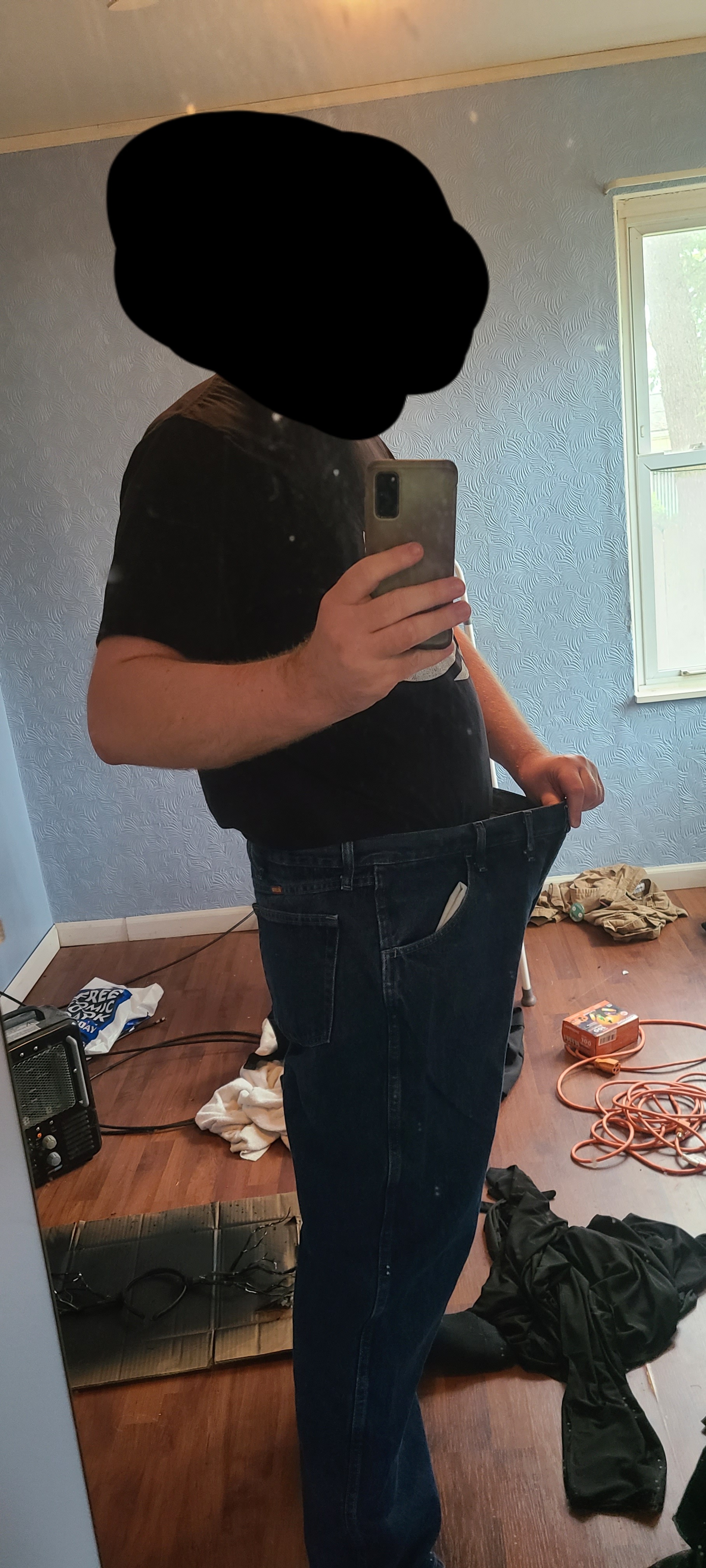 Good news: smallest size pants I have are sized 44. Largest I have are 48. Quite the accomplishment.Bad news: I have a date in a few minutes with a girl I've been majorly hitting it off with.