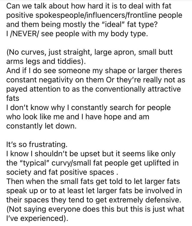 >>77211441>making the same small fats vs large fats distinction as a coping body positivity haes womanGet a grip, anon.