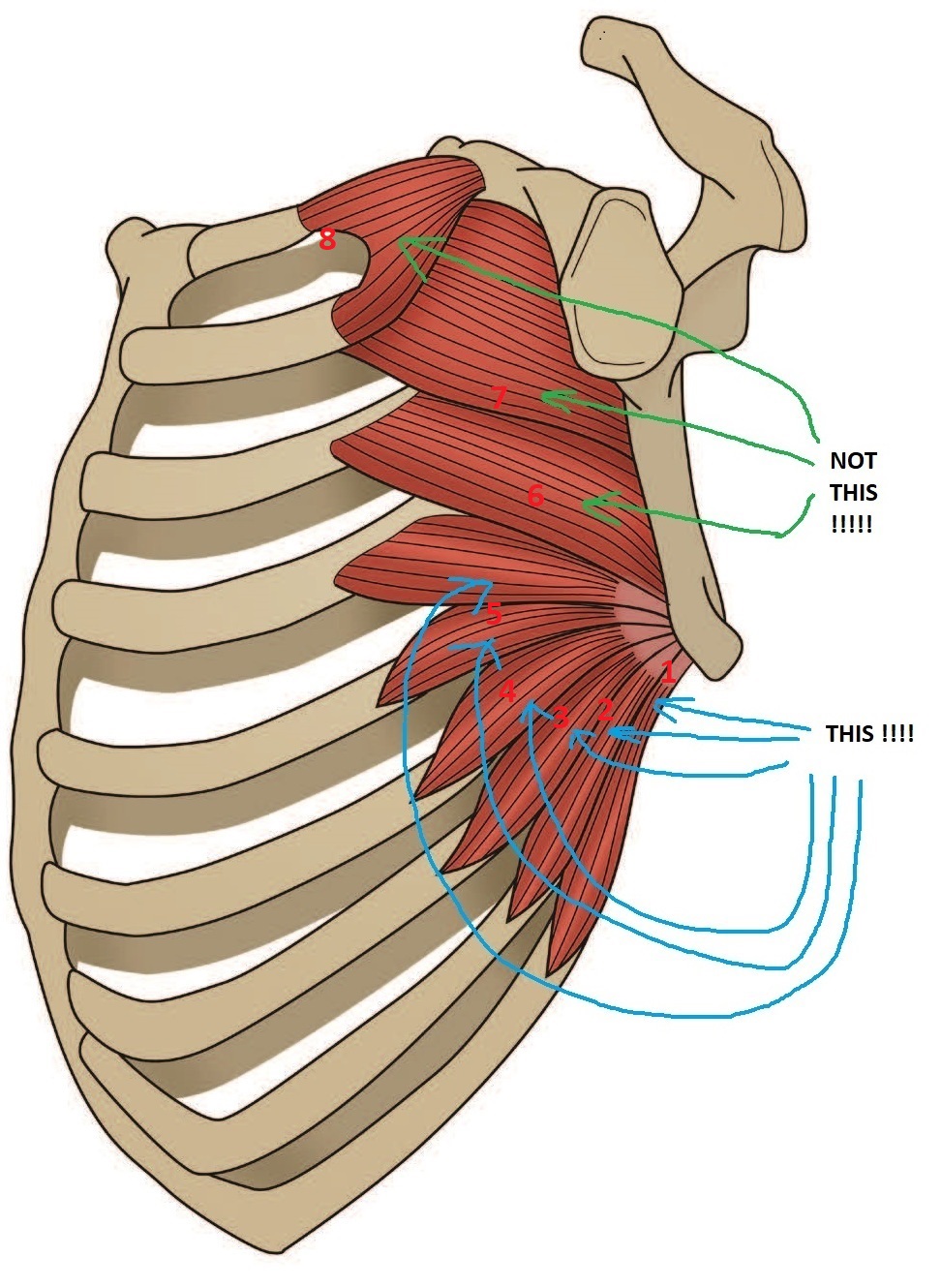 to avoid scapular retraction i pull also from across body - lower traps and lats ( when u reach around body and look at ribcage that fold of lat appeared) popped immediately from this kind of pull, it's also very innocuous to anything, i'd say therapeutic even, serratus is also engaged cause shoulders stay in protraction - all good things