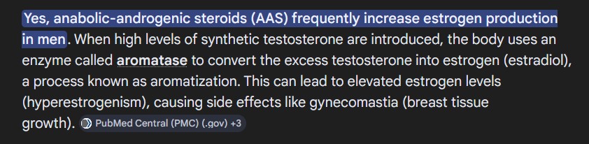>>77212013Yes estrogen is essential for men and women, a roid troon's hormone balance is all out of wack, they basically destroy their endocrine system
