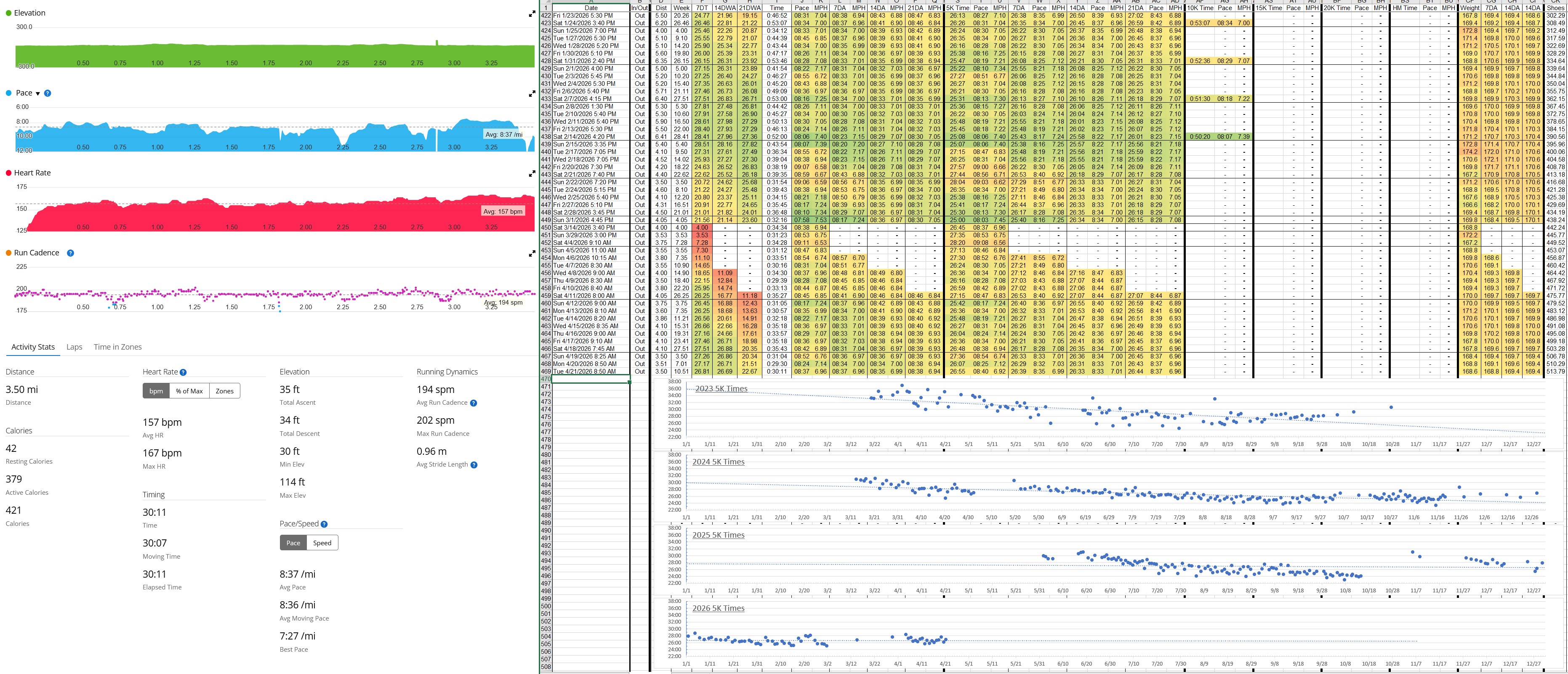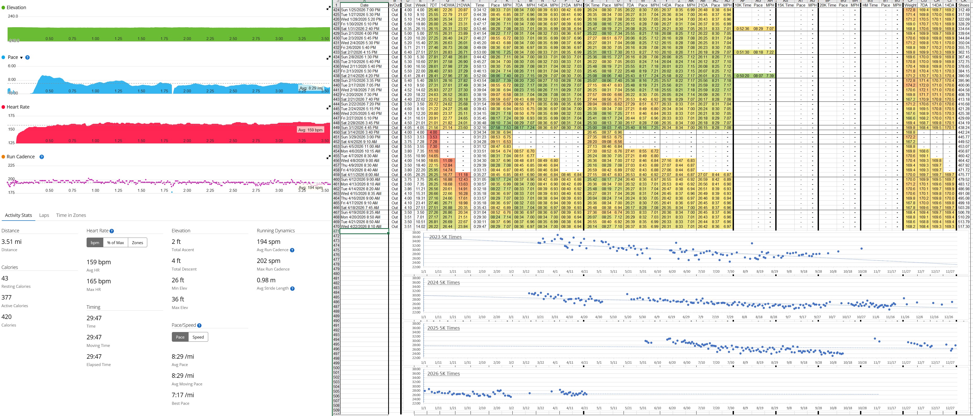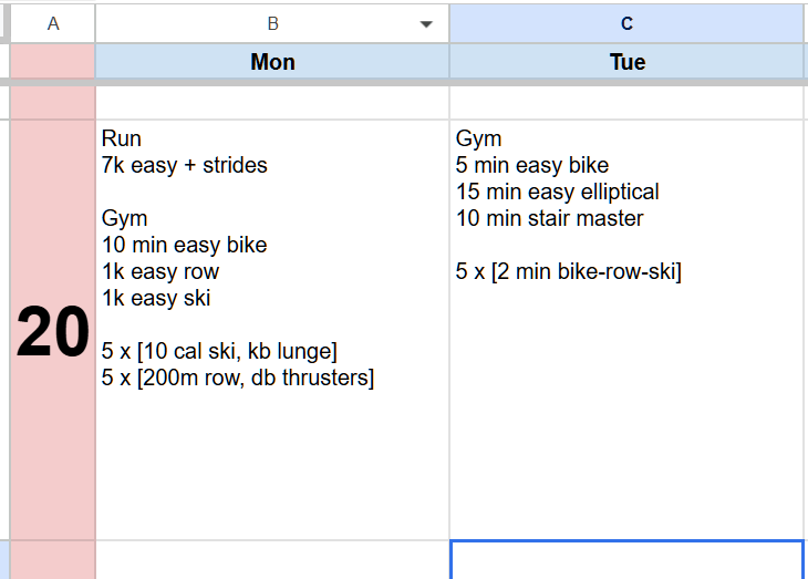 2k, 1k, 4x400felt terrible on the 400s and strong headwind for the last 100 of each one
