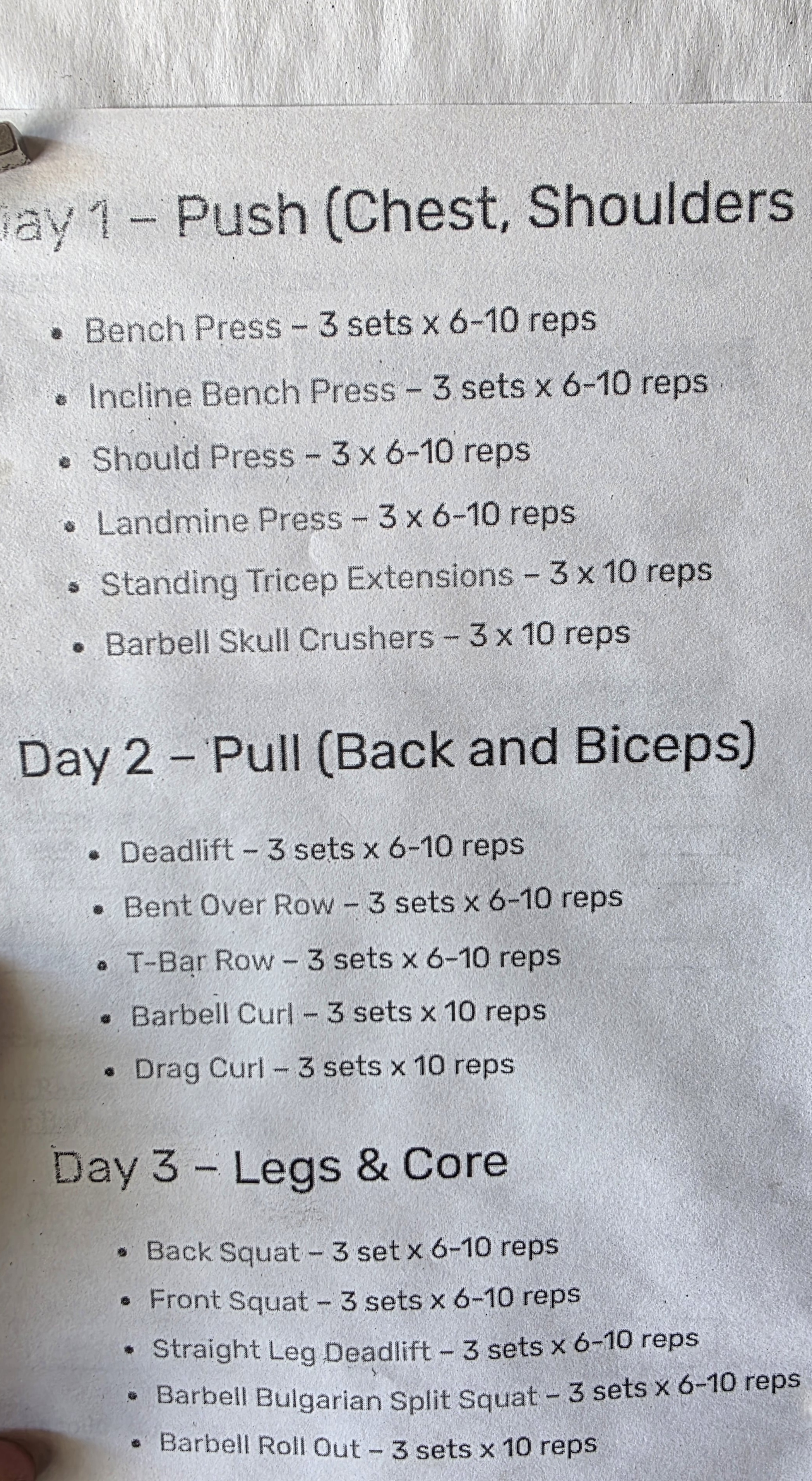 >>77216612wouldnt Legs-Push-Pull be more logical than Pull-Push-Legs since Legs are the bigger muscle group and require more energy at the beginning of the week? OR even Legs-Pull-Push starting with with the largest muscle groups down to the smallest.