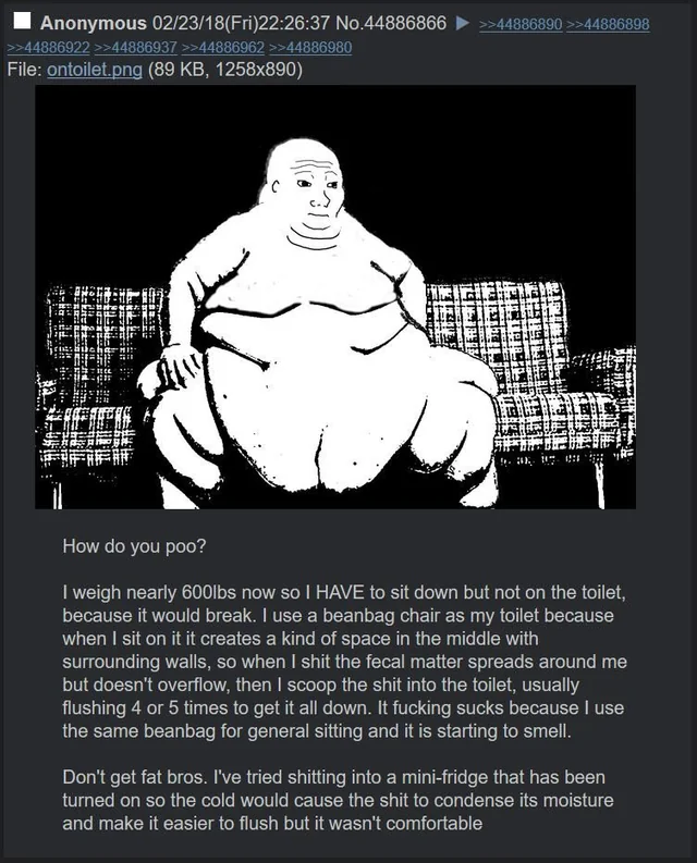 You faggots jerk off to fat fucks too muchPost proper body horror consequences of being a disgusting flesh amalgamation