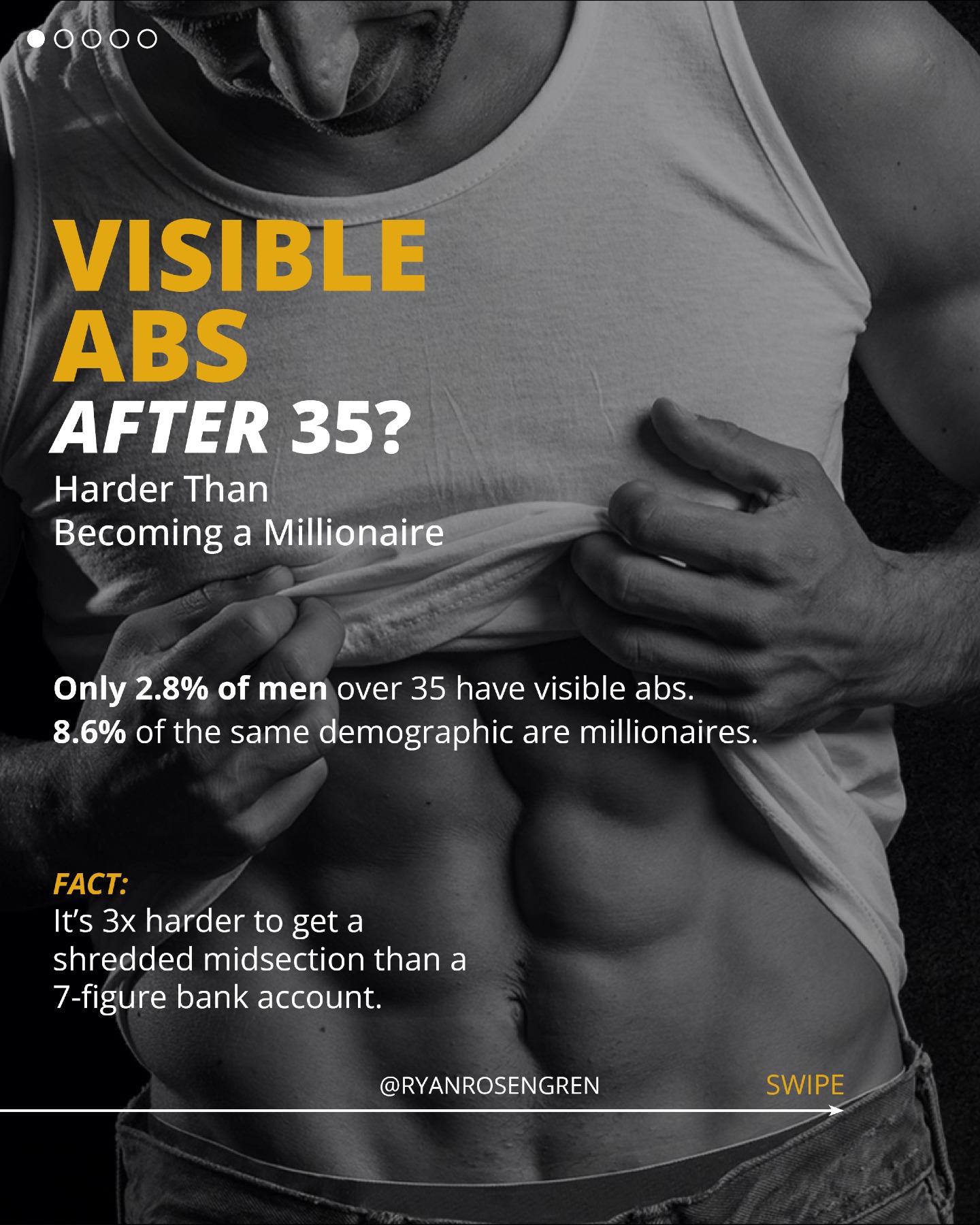 Getting and maintaining visible abs is harder than becoming a millionaire. Millionaires spend tens to hundreds of thousands each year trying to get the body of an autist who posts on 4chan and jacks off to Asian cartoons.