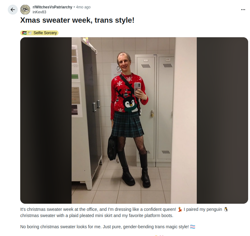 >>77231859a good one is r/WitchesVsPatriarchy It's full of troglodytes looking troons calling themselves cute and shit