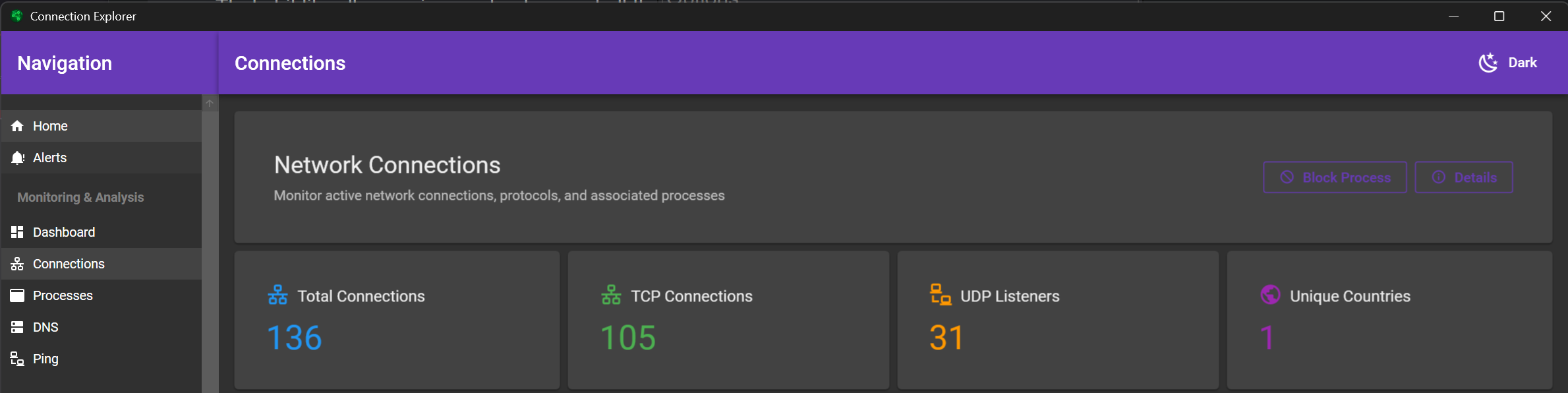 I want to check all my current connections and I want to be sure what is making what connection (like the browser or antivirus).