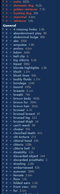 >>107696014Probably e621 from the color scheme.And seeing this fucking taglist, I don't want to know what the image looks like...