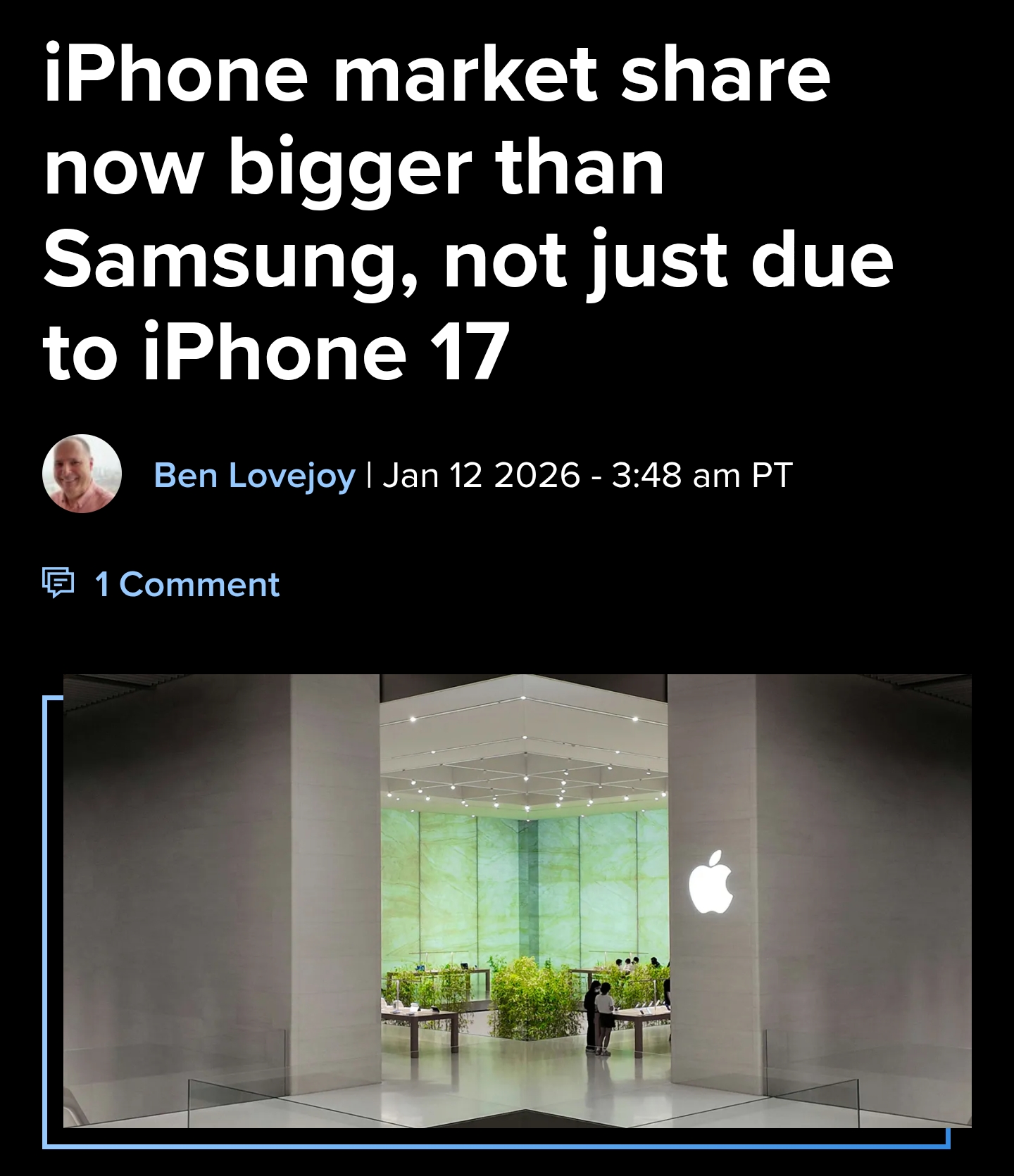 Eventually everyone will look back on Android the same way we now look back on Betamax tapes and Polaroid cameras.https://9to5mac.com/2026/01/12/iphone-market-share-now-bigger-than-samsung-not-just-due-to-iphone-17/