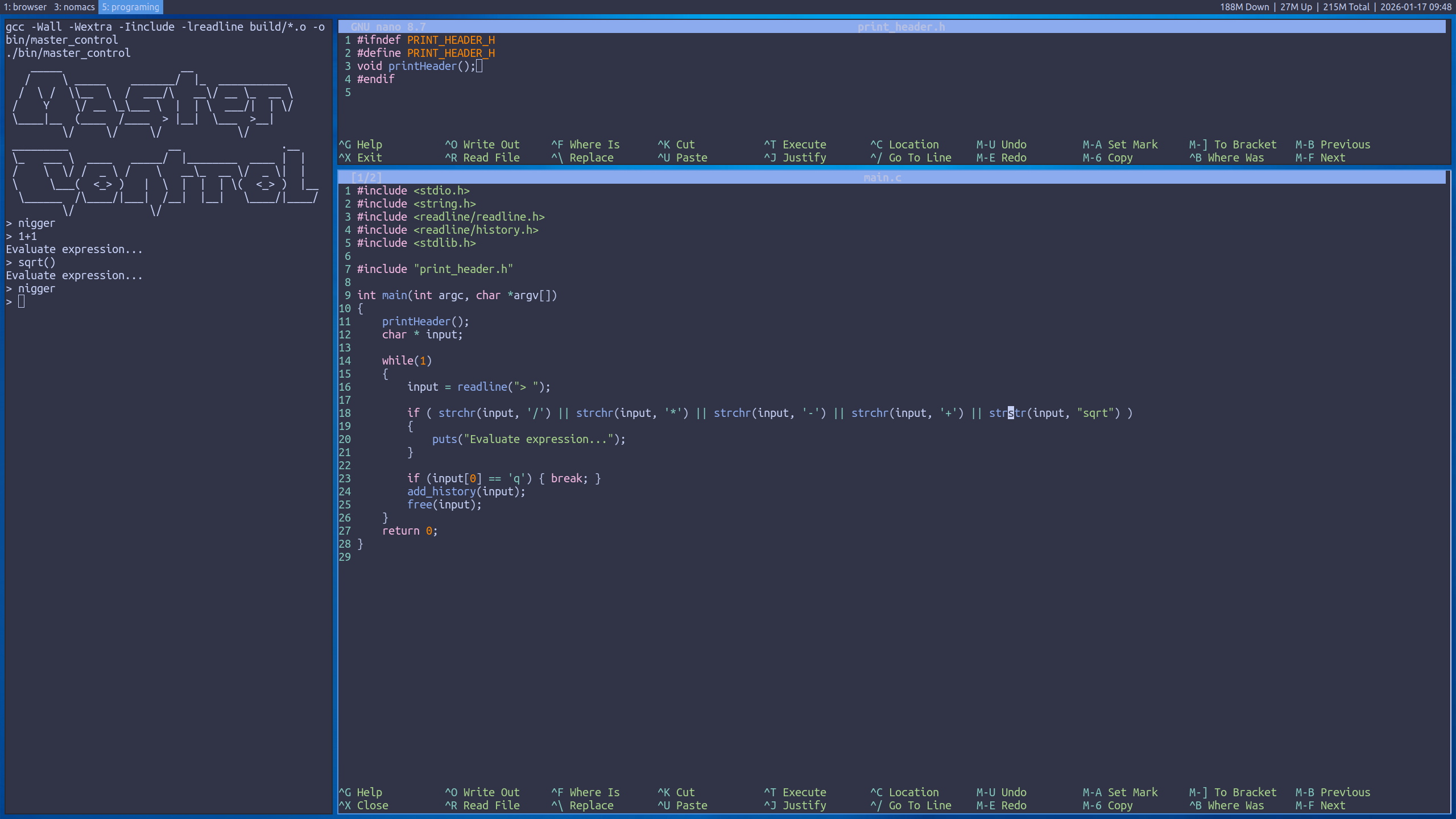 >>107874369>What are you working on, /g/?I am going to make an interpreter that will evaluate mathematical expressions, manage my passwords for me(no I won't be storing my passwords in plain text), automate various Linux administration and programming tasks, and what ever else I decide to tack on.