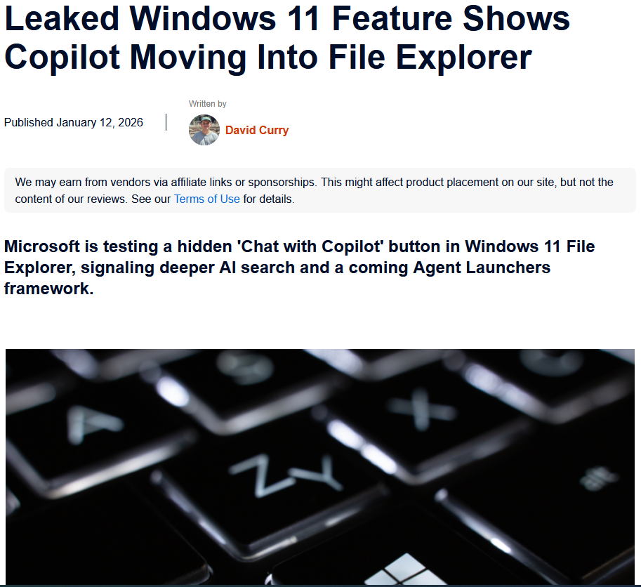 Nobody wants to use their AI spyware copilot, so now they are forcing it into the file explorer so you have to see it every day. Reports that it will scan all your files/folders as you browse.