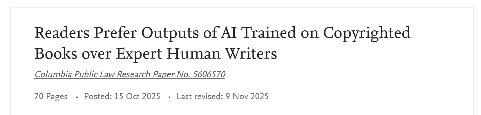 >>107672995i sort of don't believe these kinds of AI shilling articles. Yeah, most normies prefer AI art, but no one's really sharing and listening to AI music on that large of a scale. I doubt most people even read recreationally these days, so the sample size must be small.