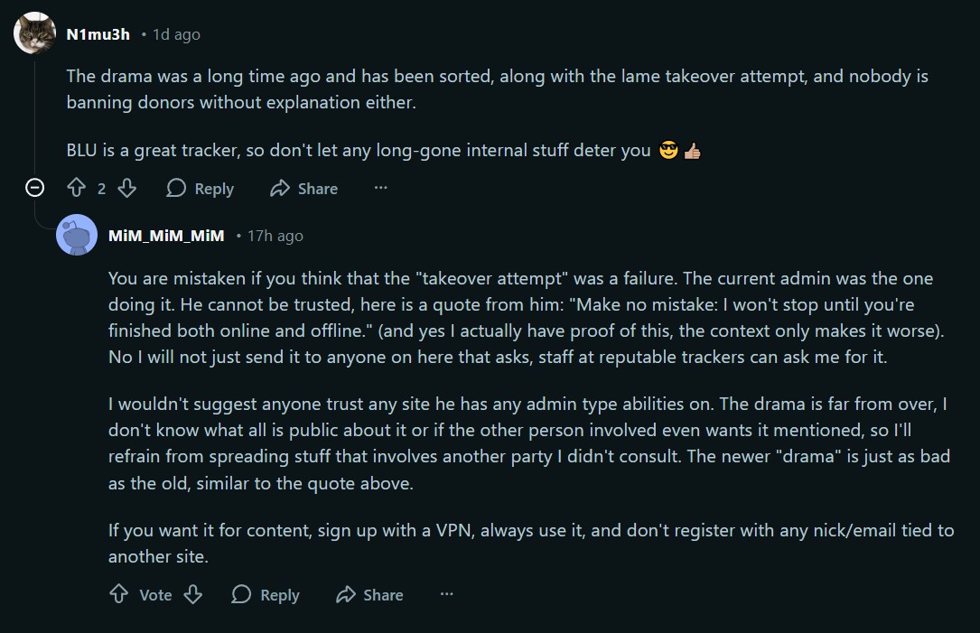 Happy 2026 edition>Not sure what private trackers are all about?A private tracker is an invite-only torrent website. Each member shares common goals: collecting, preserving and discussing media.>Have a question?- FAQ https://archive.is/UVQkn- WIKI https://igwiki.lyci.de/wiki/Private_trackers- NEWFAG PYRAMID https://inviteroute.github.io/graph or https://inviteroute.github.io/sheet/- STUDY https://www.cambridge.org/core/services/aop-cambridge-core/content/view/2F379FE0CB50DF502F0075119FD3E060- SPREADSHEET https://hdvinnie.github.io/Private-Trackers-Spreadsheet/- TEN CURRY COMMANDMENTS https://pastebin.com/raw/dBbdE73M - TEN NEON COMMANDMENTS https://pastebin.com/raw/Ud2pGYaE - RED SPAMMER'S BIBLE https://rentry.org/69zbxh4h- #ptg is on irc.sageru.org but it's pretty deadComment too long. Click here to view the full text.