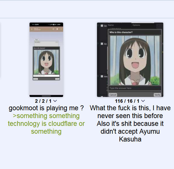 >click "cancel" on ONE (1) captcha because it was some stupid anime character I didn't recognize>permanently goes back to normal captchas even when I open up incognito modewow mods great job